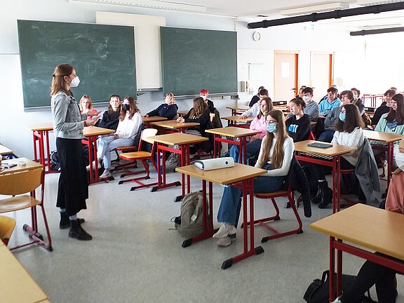 Ein Blitz aus einer Gewitterwolke oder zwei Menschen, die mit verschränkten Armen Rücken an Rücken stehen – das sind Bilder bzw. Symbole, die man mit Streit verbindet. Doch Streit muss nicht immer negativ sein. Im Gegenteil: Wir brauchen eine gepflegte Streitkultur für eine starke und funktionierende Demokratie! Dieses und vieles mehr lernten die Schüler*innen der 10. Klassen des Johann-Andreas-Schmeller-Gymnasiums bei einem interaktiven Vortrag am letzten Schultag vor den Osterferien. Die Referentin Kristin Majeweski von der Landeszentrale für politische Bildung war einer Einladung von StRin Dr. Nadine Kilgert-Bartonek gefolgt und begann ihren spannenden Workshop gleich mit der Frage: „Na, wer bist du denn?“ Die Jugendlichen sollten sie daraufhin beschreiben, also von ihrem Auftreten, ihrem Aussehen und ihrer Sprache auf ihren Charakter, ihre Bildung und ihre Fähigkeiten schließen. Die angeblich handwerklich unbegabte Streberin, die nie ohne Alkohol auf den Tisch steigen und Karaoke singen würde, wollte damit erreichen, dass die jungen Erwachsenen erkennen, wie Vorurteile entstehen. Majewski stellte klar, dass das so genannte Schubladendenken normal und jedem Menschen innewohnend sei, jedoch werde es problematisch, wenn man bestimmte Personen oder Gruppen in eine Schublade gesteckt hat und sich diese nicht mehr öffnen lässt, sodass die Vorurteile für immer verfestigt sind. Gegen Vorurteile und die daraus resultierende Diskriminierung, den Rassismus, den Sexismus etc. müsse angekämpft werden. Die Schüler*innen stellten ganz richtig fest, dass man, wenn man in einer demokratischen Gesellschaft nicht mehr streiten würde, kein Austausch, kein Fortschritt und keine Problemlösungen mehr stattfinden würden.