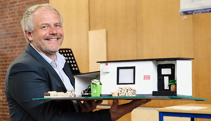 Als außergewöhnlich gut wurden schließlich die Alarmanlagen von Moritz Rauch (6a) und Tom Schafbauer (11a) bewertet und aus diesem Grund mit einem 1*. Preis und 120 Euro belohnt. Das oiginelle Modellhaus, das Moritz mit viel Liebe zum Detail gebaut hatte, lässt niemanden unerkannt, der vor der Haustür steht oder womöglich die Türe öffnet - neben einem akustischen Signal erscheint auch ein beleuchteter “Geist” im Fenster, um Diebe in die Flucht zu schlagen. Auch Tom hatte ein mehrfach gesichertes Modellhaus gebaut, das mit vielen Features vom Temperatur- und Abstandsmesser über eine automtische Tür bis hin zum Fingerabdrucksensor ausgestattet ist. Nur autorisierte Personen erhalten hier Zutritt, Eindringlinge in der Nähe des Hauses können in verschiedenen Alarmstufen erkannt und per Videokamera beobachtet werden. Das komplexe System aus Sensoren und Motoren wird dabei von mehreren, selbst programmierten Microcontrollern gesteuert.