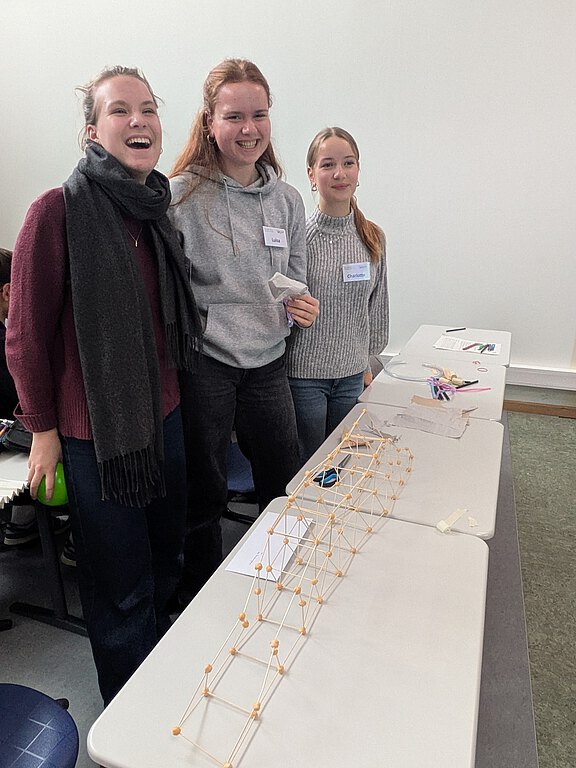 Die Initiative Junge Forscher war extra aus Würzburg ans JMF-Gymnasium gereist. Eingebettet in ein Exit-Game erwarteten die Schülerinnen und Schüler spannende Team-Challenges und Experimente rund um Energie, Bionik und Leichtbau. Bei Brückenbau mit Saschlikspießen und Kichererbsen, der Arbeit mit Wärmebildkameras und der kreativen Herstellung eines Flugobjekts wurde die Begeisterung für naturwissenschaftliches Arbeiten geweckt und gefördert.