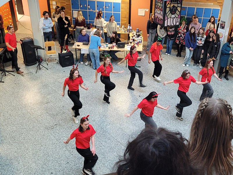 Die Stände, die sich über das gesamte Schulgebäude erstreckten, boten aber nicht nur eine Vielzahl von Leckereien und handwerklichen Kreationen. Man konnte sich auch mit „Mystery-Geschenken“ versorgen und auf dem Bücherflohmarkt stöbern. Daneben gab es zahlreiche Mitmachaktionen von der Papierflieger-Challenge bis hin zu einer Weihnachts-Ausgabe von „Just Dance“. Zwei besondere Highlights waren der Auftritt des gemischten Chores, der mit weihnachtlichen Liedern auf das bevorstehende Fest einstimmte, sowie die Tanzeinlagen des P-Seminars Sports.