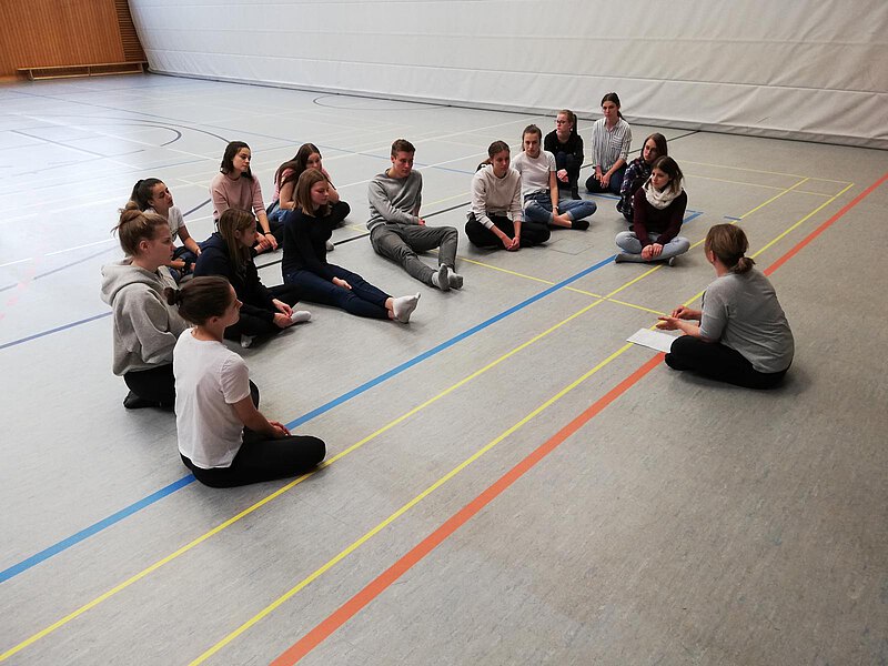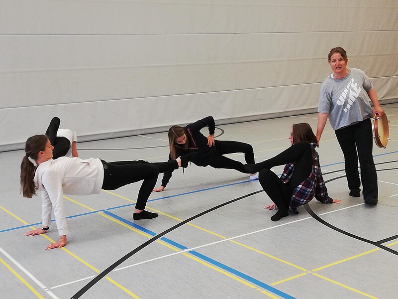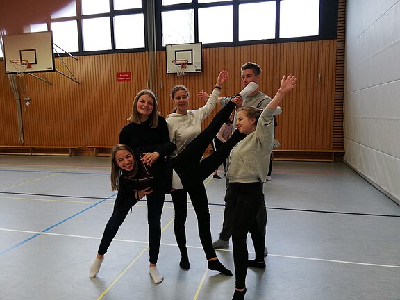Am Tag der offenen Tür im März hatte das P-Seminar Tanz (Sport) unter Leitung von Herrn Malzer bereits seinen durchaus positiv wahrgenommenen ersten Auftritt. Um noch weitere ambitionierte folgen lassen zu können, wurden die dreizehn Tänzerinnen und ein Tänzer aus der Q 11 von Frau Pamela Schwab, Dozentin am Sportzentrum der Universität Regensburg, nach allen Regeln der Tanzkunst instruiert. In dem zweistündigen Workout standen Bewegungs- und Ausdrucksschulung ebenso wie Elemente des kreativen Tanzes in Partnerübungen bis hin zur Gestaltung in Kleingruppen auf dem Programm. Ebenso konnte Frau Schwab wertvolle Tipps und Anregungen zur Erweiterung und Aufwertung bereits bestehender Choreografien geben. Im Vordergrund standen die Erarbeitung bestimmter Bewegungs- und Tanzaufgaben und deren Präsentation vor den Seminarteilnehmern. Zum Abschluss des 120-minütigen, intensiven Coachings durften die Seminarteilnehmer inklusive Seminarleiter noch einen Ausflug in den Bereich des „Jump-Style“ unternehmen. Herr Malzer dankte Frau Schwab herzlich für ihr Kommen und ihr Engagement, welches nicht zuletzt durch die Partnerschaft des JAS-Gymnasiums mit der Universität Regensburg zustande gekommen war und welches von Seiten des gesamten Seminars als sehr gewinnbringend bewertet und folglich auch mit großem Applaus bedacht wurde. Das Angebot zur weiteren Zusammenarbeit wird wohl in nicht allzu ferner Zukunft vom Seminar dankend angenommen werden.